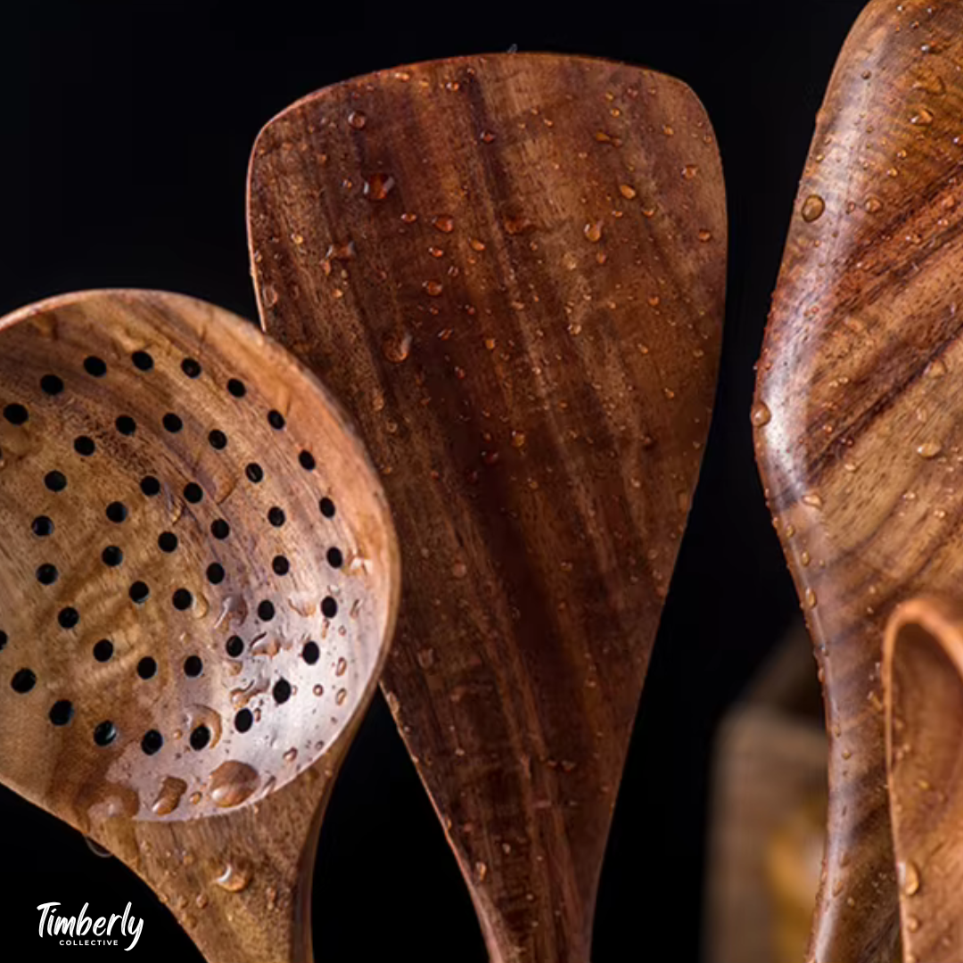 Crafted from premium teak wood, our utensil set combines elegance and durability.